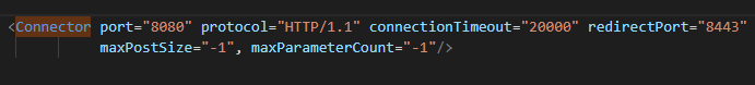 데이터 크기는maxPostSize, 파라미터 갯수는 maxParameterCount 속성으로 설정할 수 있습니다.