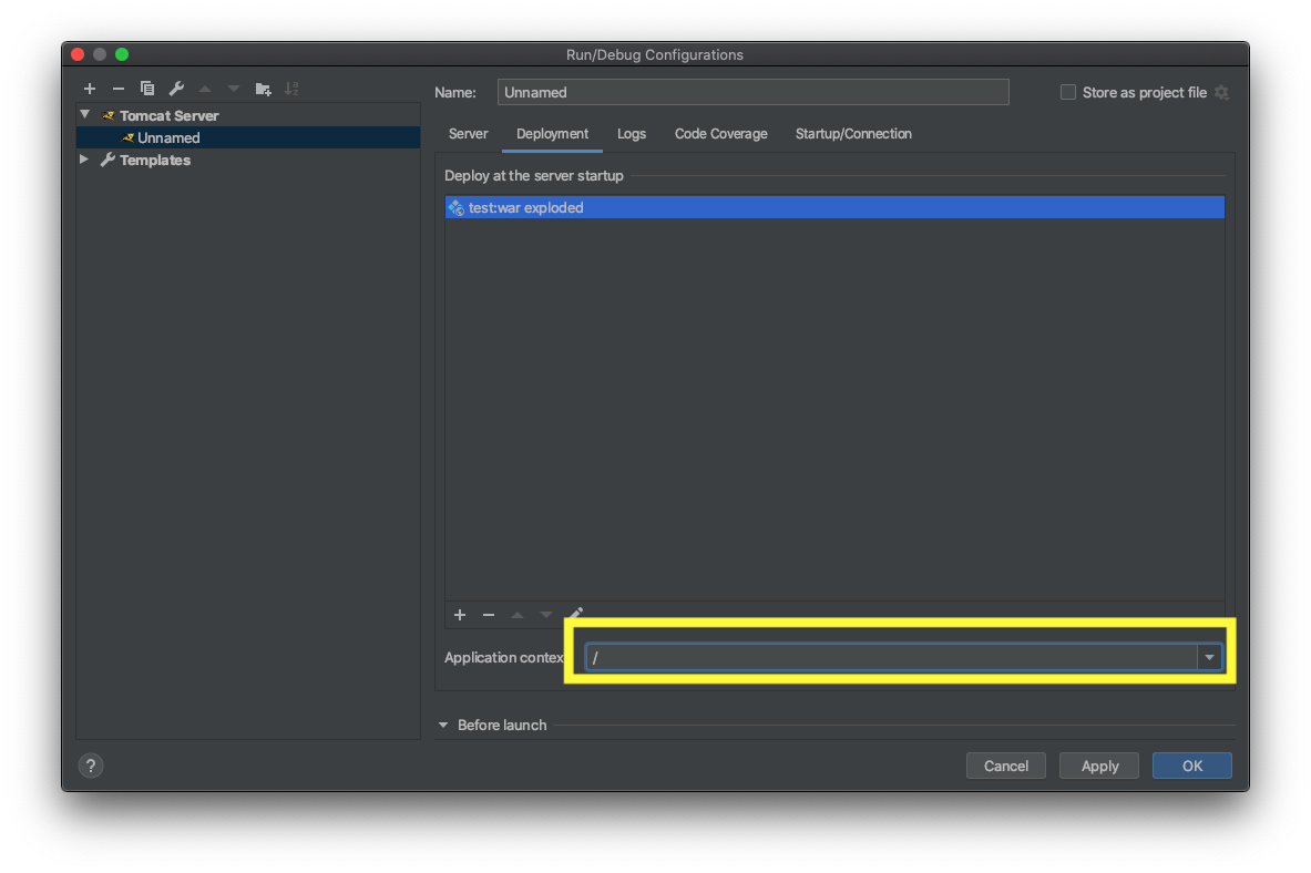 /프로젝트명_war_exploded로 되어있습니다. 이를/로 바꾼 후Apply를 클릭합니다.