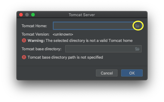 Tomcat Home부분의 디렉토리 아이콘을 클릭하여 톰켓 경로를 설정해줍니다.