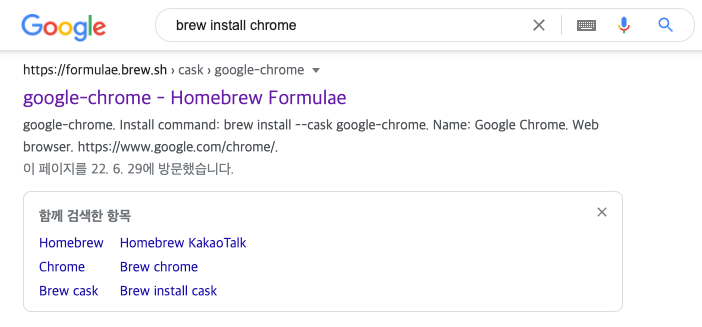 구글에 brew install chrome로 검색하면 Homebrew Formuale사이트의 글이 나옵니다.